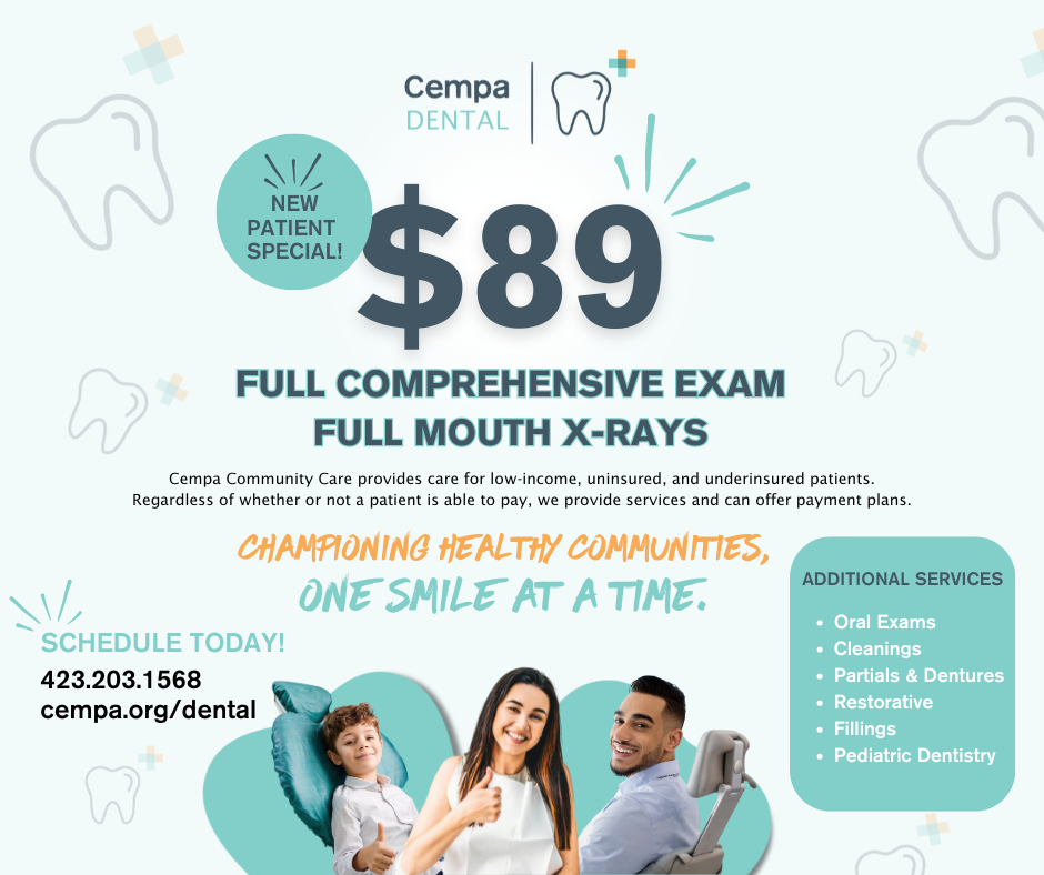 Cempa Dental is located at 1042 E. 3rd Street, Suite 100, in Chattanooga, TN, and accepts all types of insurance, making it easy to prioritize your oral health. To welcome new patients, we’re offering a comprehensive exam and full mouth X-rays for only $89! Give yourself the gift of a stunning smile by scheduling your appointment today. Just call 423.203.1568 or visit Cempa.org/dental.