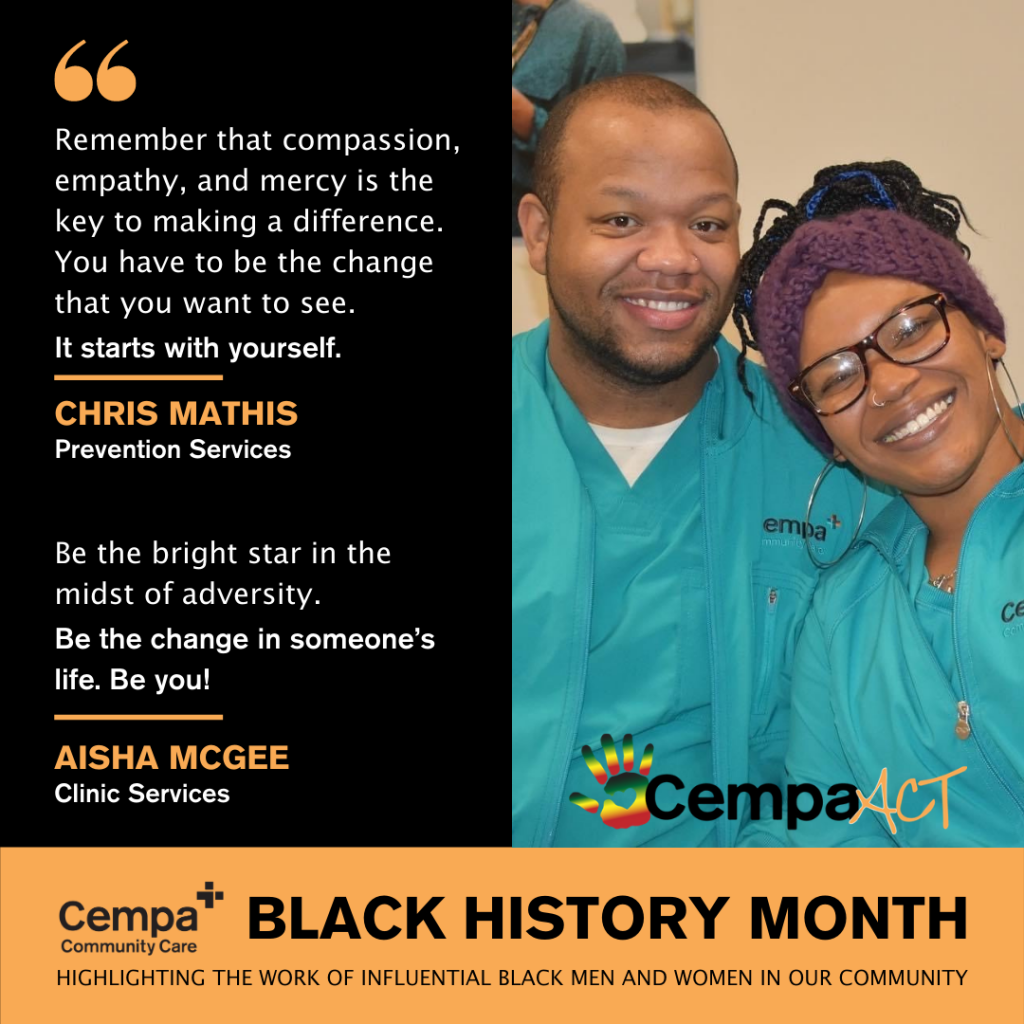 Cempa Community Care celebrates Black History Month and the unique diversity of our community by recognizing the impact of the leaders of yesterday, acknowledging the leaders of today, and encouraging the leaders of tomorrow. Through unity, compassion, excellence, integrity and empowerment Cempa is leading the charge to be the Champions for Your Cause! Beginning with a person-centered mission, and a holistic approach to improving health, we can inspire change in our community.
