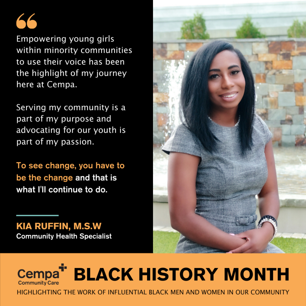 Cempa’s Community Health Specialist, Kia Ruffin is passionate about the work she does by empowering young women in our community. We’re excited to feature her this week as we continue to celebrate Black History Month and highlight the achievements of our staff!