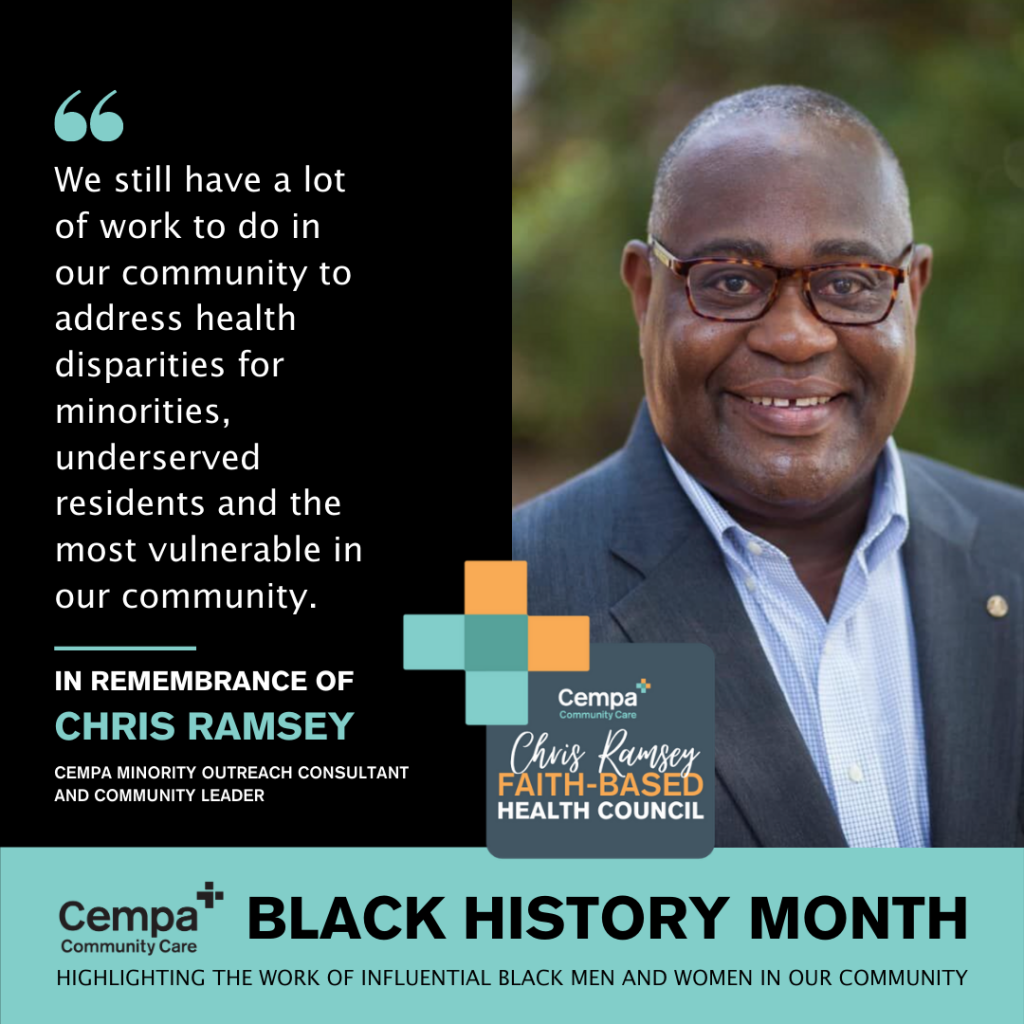 We remember the contributions of Chris Ramsey who served as Cempa’s Minority Outreach Consultant. Chris was passionate about providing vital resources to those individuals we serve. In remembrance of him, we’re honored to debut the new logo for the Chris Ramsey Faith-Based Health Council, previously known as the Faith-Based Health & Wellness Council.